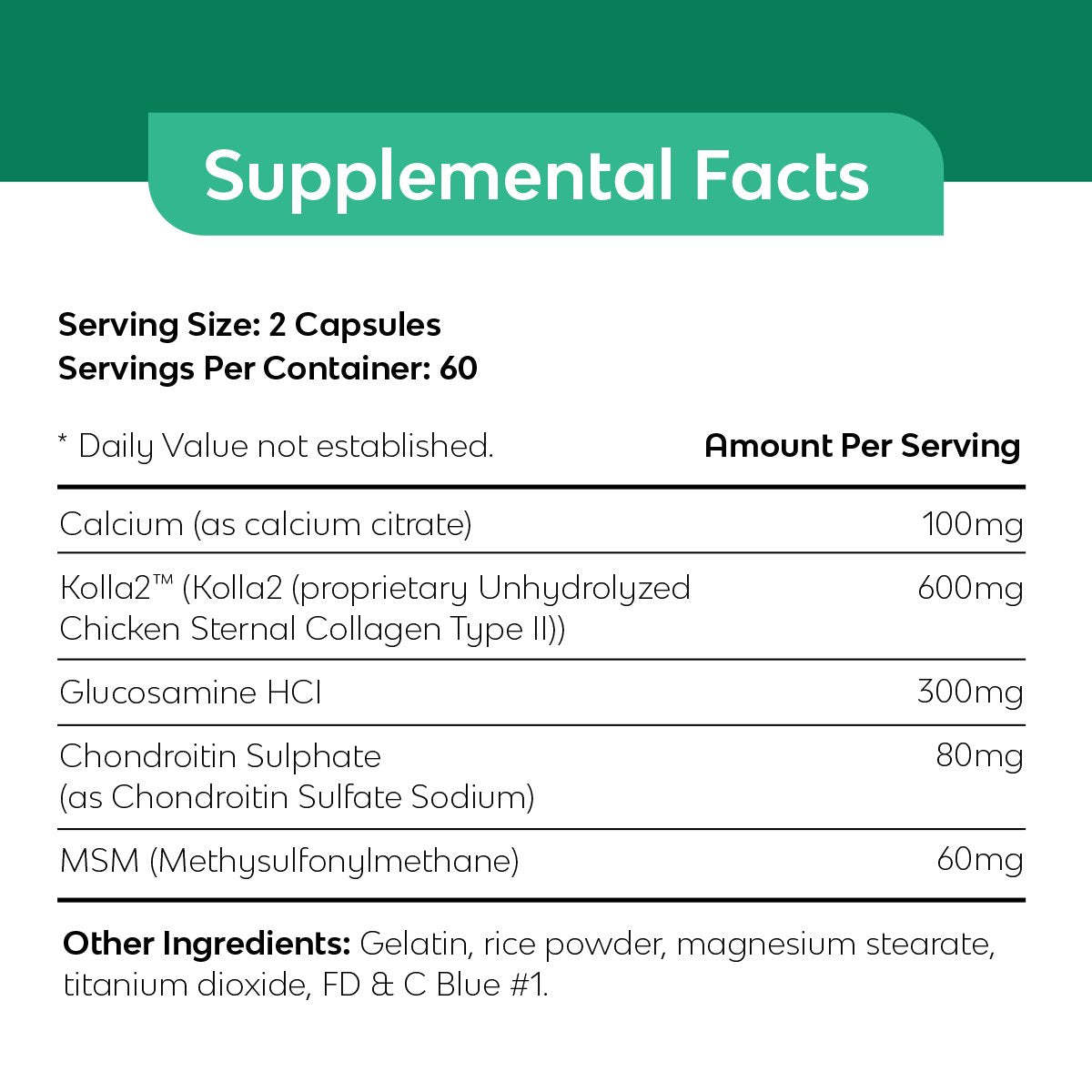 | Kolla2™(Kolla2 (proprietary Unhydrolyzed Chicken Sternal Collagen Type II)) | 600 mg |
