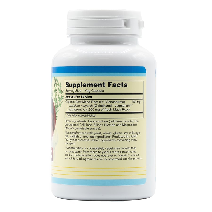 | 有机生玛卡根(6:1浓缩液) (Lepidium meyenii)(糊化 - 素食)† (相当于 4,500 毫克新鲜玛卡根) | 750毫克 |